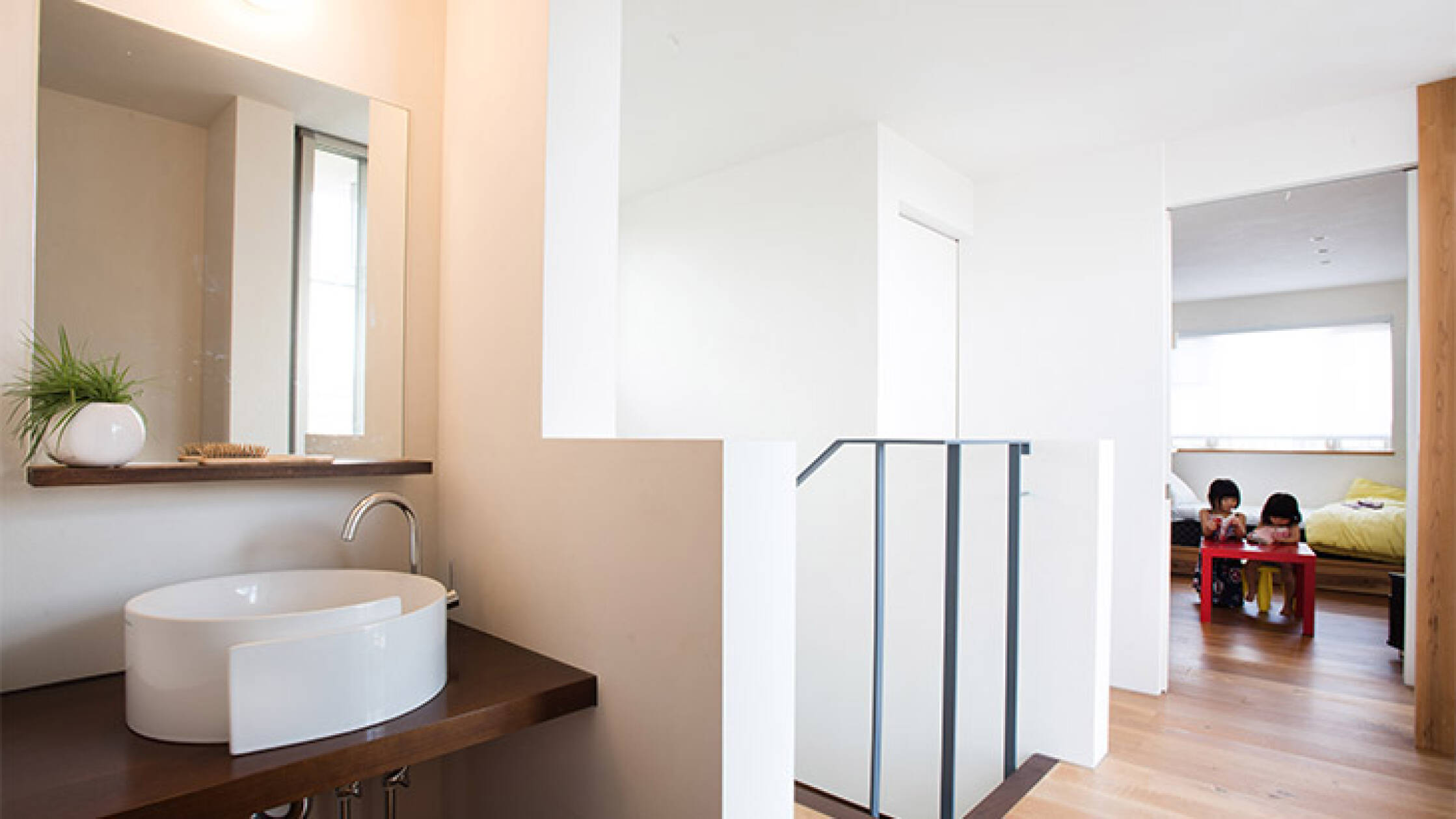 ちょうど東にあたる場所に中庭を作ることで朝の光がリビングに入ってくる。